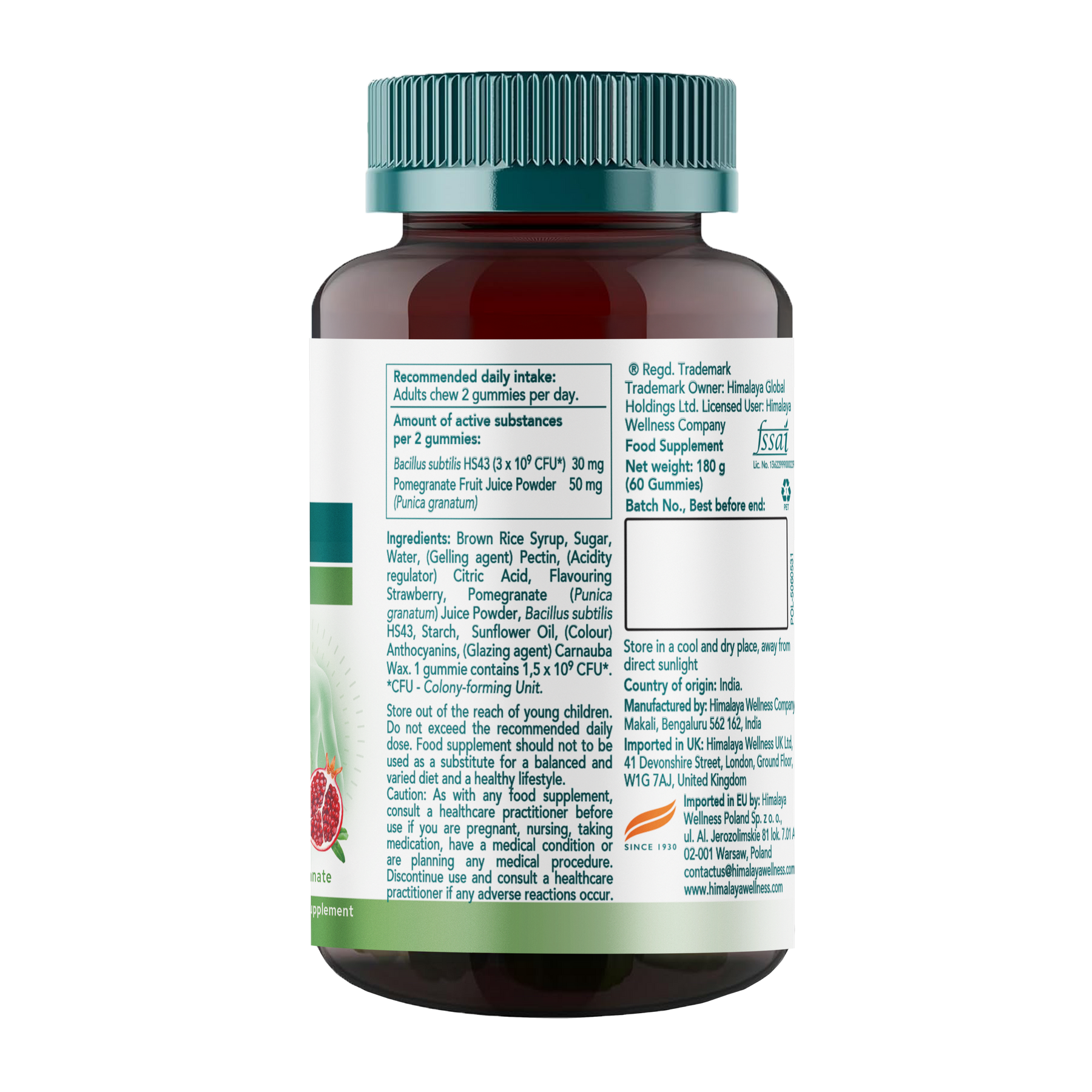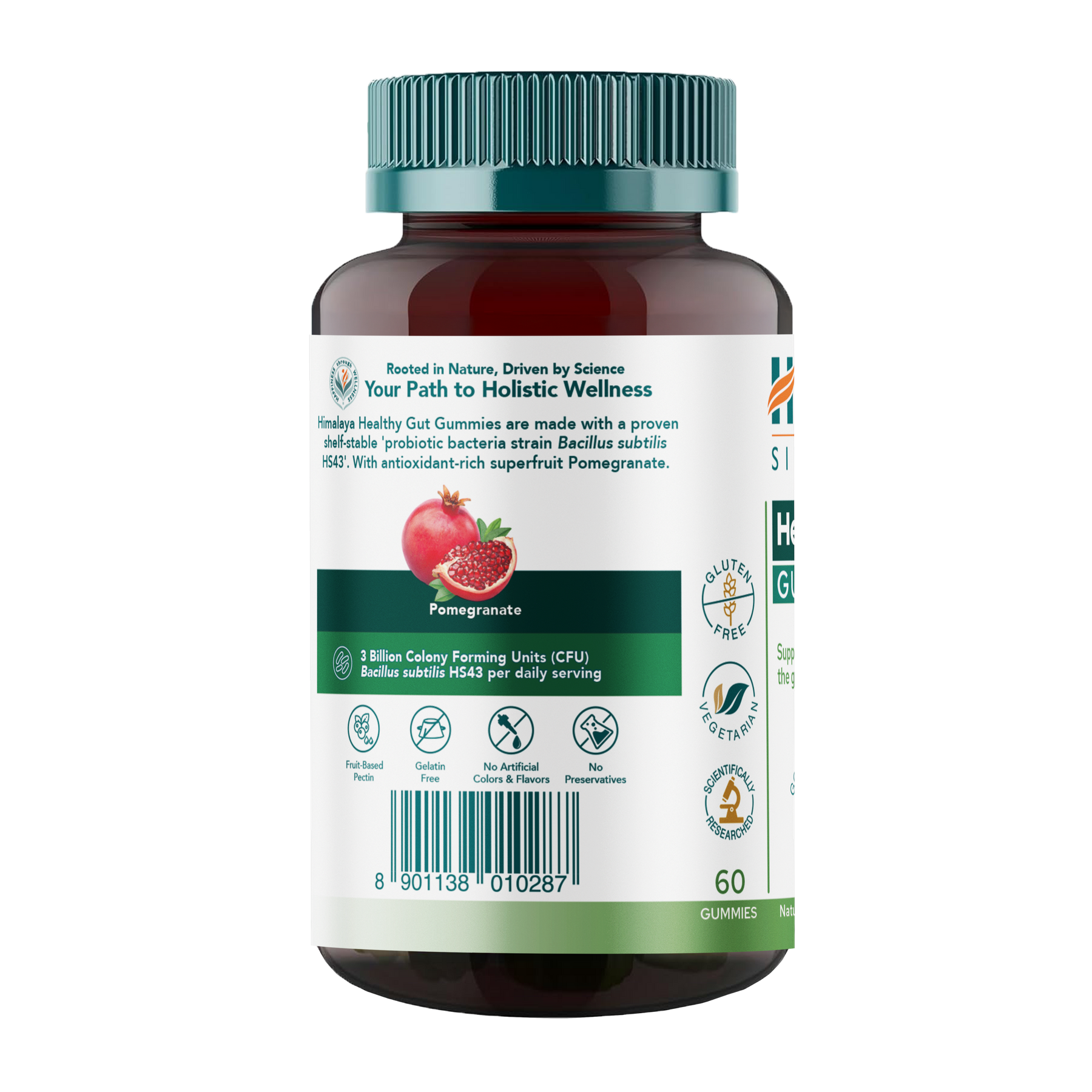 • IL POTERE DELL'AYURVEDA E DELLA SCIENZA IN DELIZIOSE CARAMELLE GOMMOSE – HEALTHY GUT GUMMIES è un integratore alimentare in forma di caramelle gommose. Combina ceppi di batteri Baccillus subtilis con il melograno, un superfrutto ayurvedico ricco di antiossidanti. Una dose giornaliera contiene 6 miliardi di CFU (CFU: unità formanti colonie).