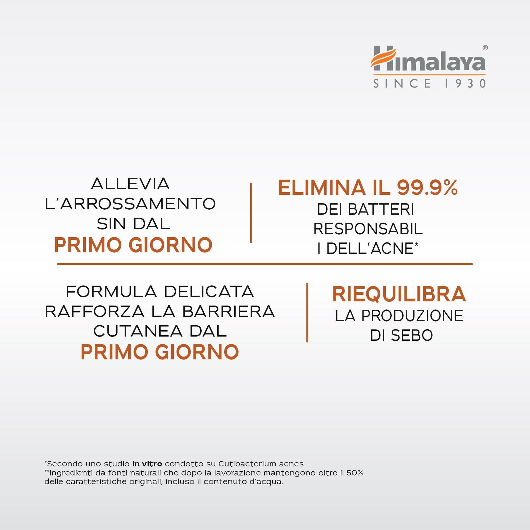 - Aiuta a combattere i 5 segni dell'acne: eccesso di sebo, brufoli, arrossamenti, pori ostruiti e macchie cutanee.