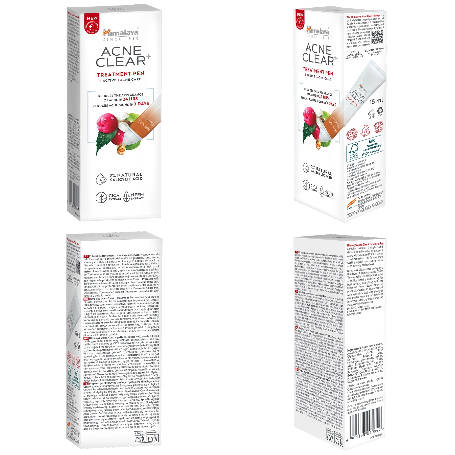 Combatti rapidamente i brufoli con Himalaya Acne Clear+ Treatment Pen: un correttore spot clinicamente testato che riduce i brufoli visibili in 24 ore. Formulato con acido salicilico naturale al 2%, CICA (Centella Asiatica) ed estratto di Neem, questa "penna" elimina il 99,9% dei batteri dell'acne. Il suo applicatore preciso e pratico consente un uso facile e mirato tutte le volte che ne hai bisogno. La formula leggera e non grassa con il 98% di ingredienti di origine naturale è perfetta per una cura quotidiana mirata. Clinicamente testato per combattere i 5 segni dell'acne - eccesso di sebo, brufoli, arrossamenti, pori ostruiti e macchie - per regalarti una pelle visibilmente più chiara, più velocemente.